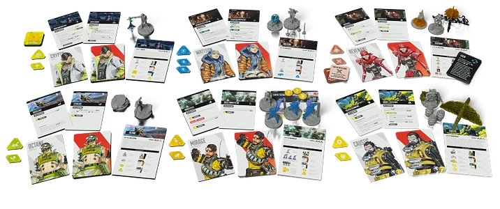 Apex Legends: Gra planszowa - Drużyna 1 wprowadza do gry drużynę 6 nowych legend (Caustic, Crypto, Mirage, Octane, Revenant i Wattson) oraz elementy niezbędne każdej z nich, w tym figurki legend i ...
