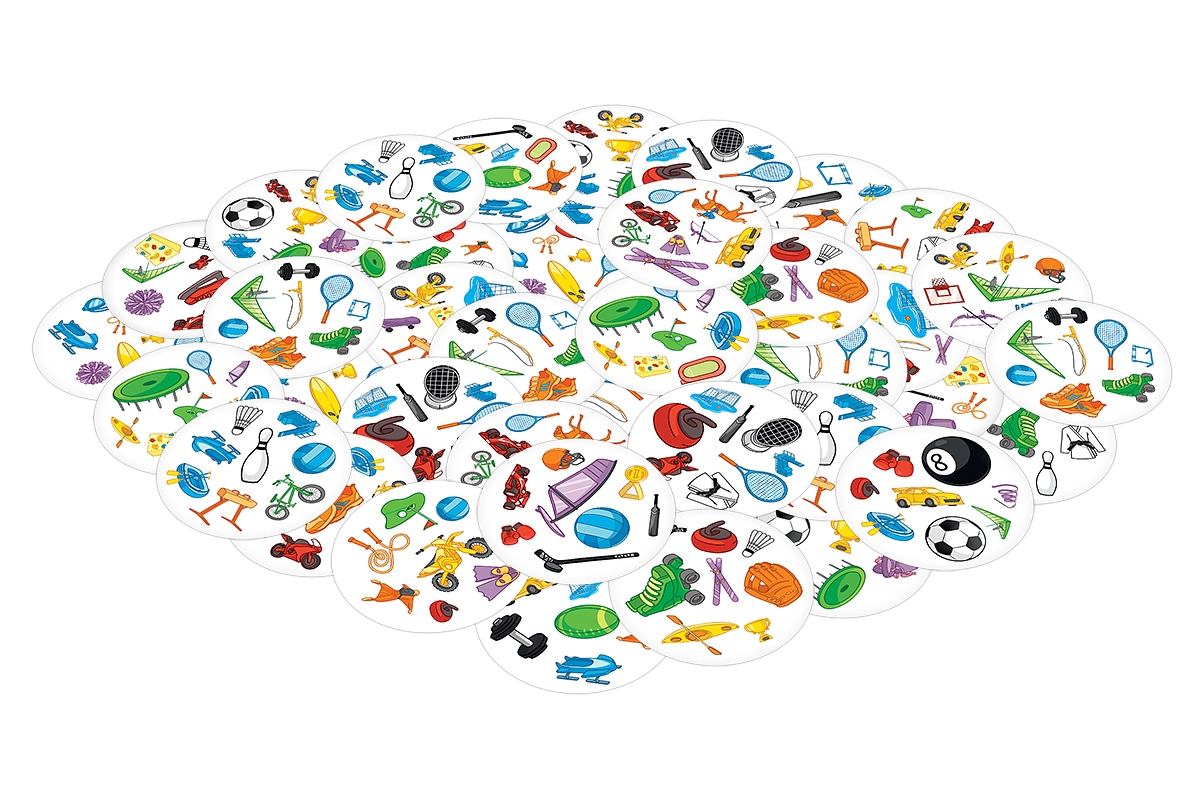 Spójrz na pierwszą kartę, którą trzymasz w ręku oraz na tę, która leży na środku stołu. Znajdź na nich wspólny symbol, nazwij go i szybko pozbądź się swojego kartonika. Teraz następny! Tylko nie zwątp, każda karta łączy się z inną zawsze tylko jednym symbolem!