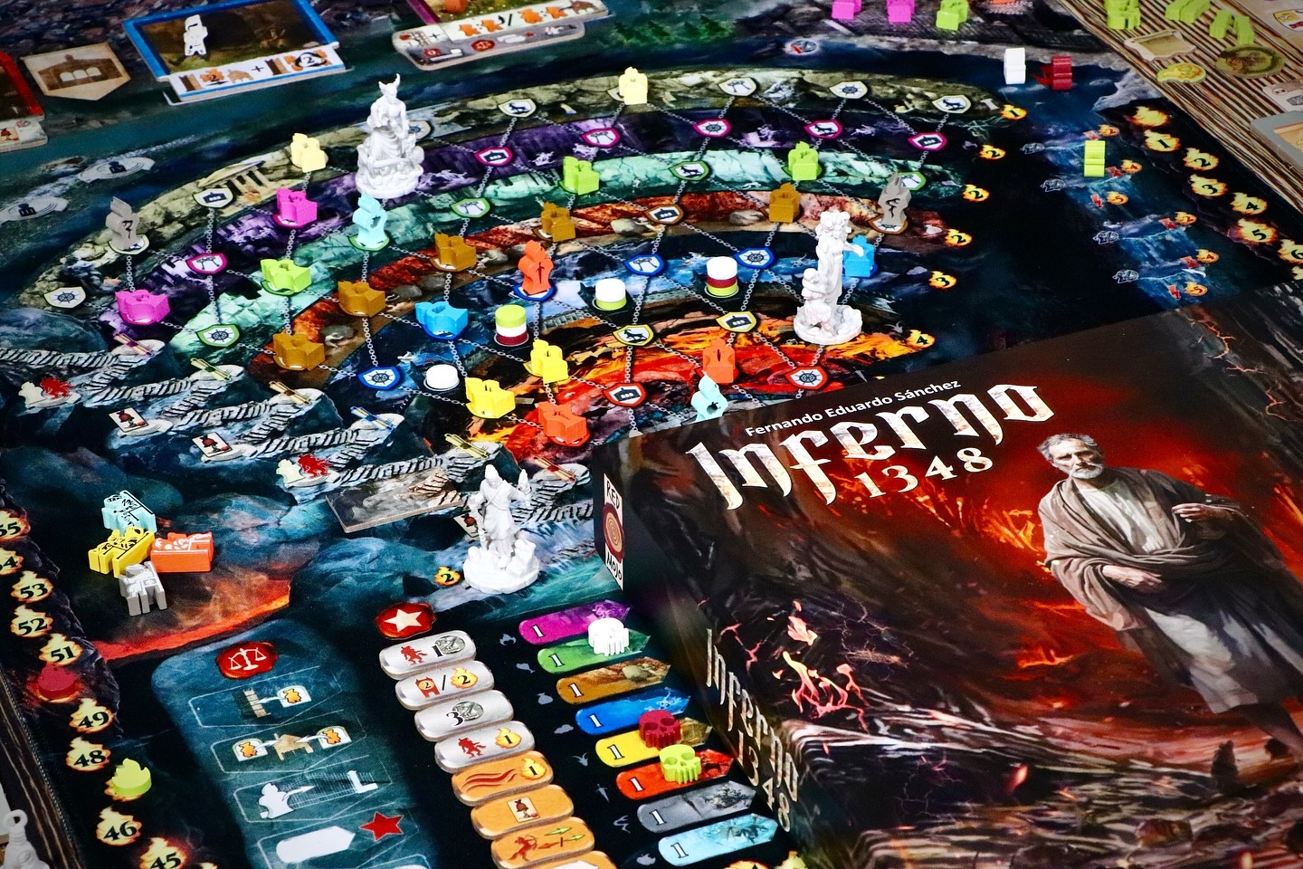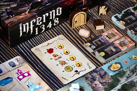 Opis w języku angielskim: In 1348, the Plague reaches Florence. Hunger, disease, and despair uncover the city’s darkest side. Inferno 1348 is the first full expansion of Inferno. It brings two major modules and a set of smaller ones, ready to be mixed and matched as you like. Some of these modules increase interaction within the city, others enhance replayability, and some shift the bala...