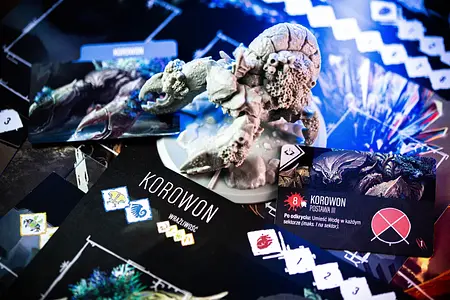 Co najlepsze - sama gra nie zajmuje dużo miejsca na stole. Wymaga jednak troszkę przestrzeni. Ale samo pudełko jest gigantyczne i figurki, potworów/bossów występujących już w podstawce, a jest ich niemało, są potwornie duże :D