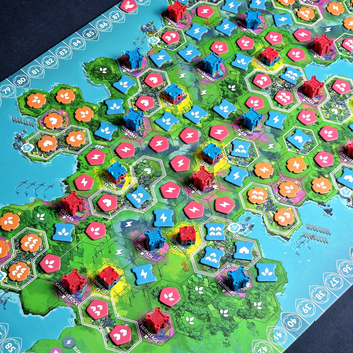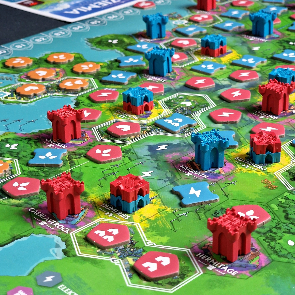 Gra przenosi was do Szkocji i Irlandii, gdzie rywalizujecie o najlepsze tereny dla rozwoju swoich klanów. Każdy wasz ruch ma znaczenie. Co turę na planszę wykładacie płytkę – budujecie farmy, elektrownie i osady. Wybieracie odpowiednie pola, aby zdobyć dodatkowe punkty za kontrolowanie portów, zamków i katedr.
