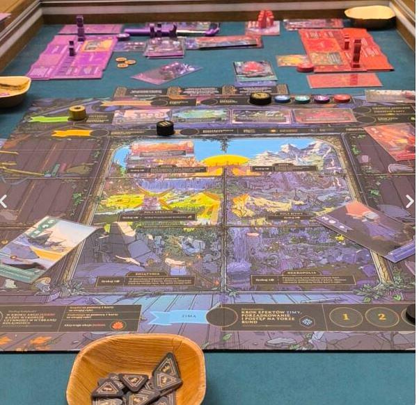 Na początku rozgrywki ilość ikon, kart i zależności może trochę przytłoczyć. Pierwsza partia to zdecydowanie poznawanie zasad i mechanik, a nie pełne wykorzystywanie potencjału gry. Dopiero później zaczyna się rozumieć, jak bardzo istotne są drobne decyzje i jak łatwo jednym ruchem popsuć sobie plan na kilka kolejnych rund.