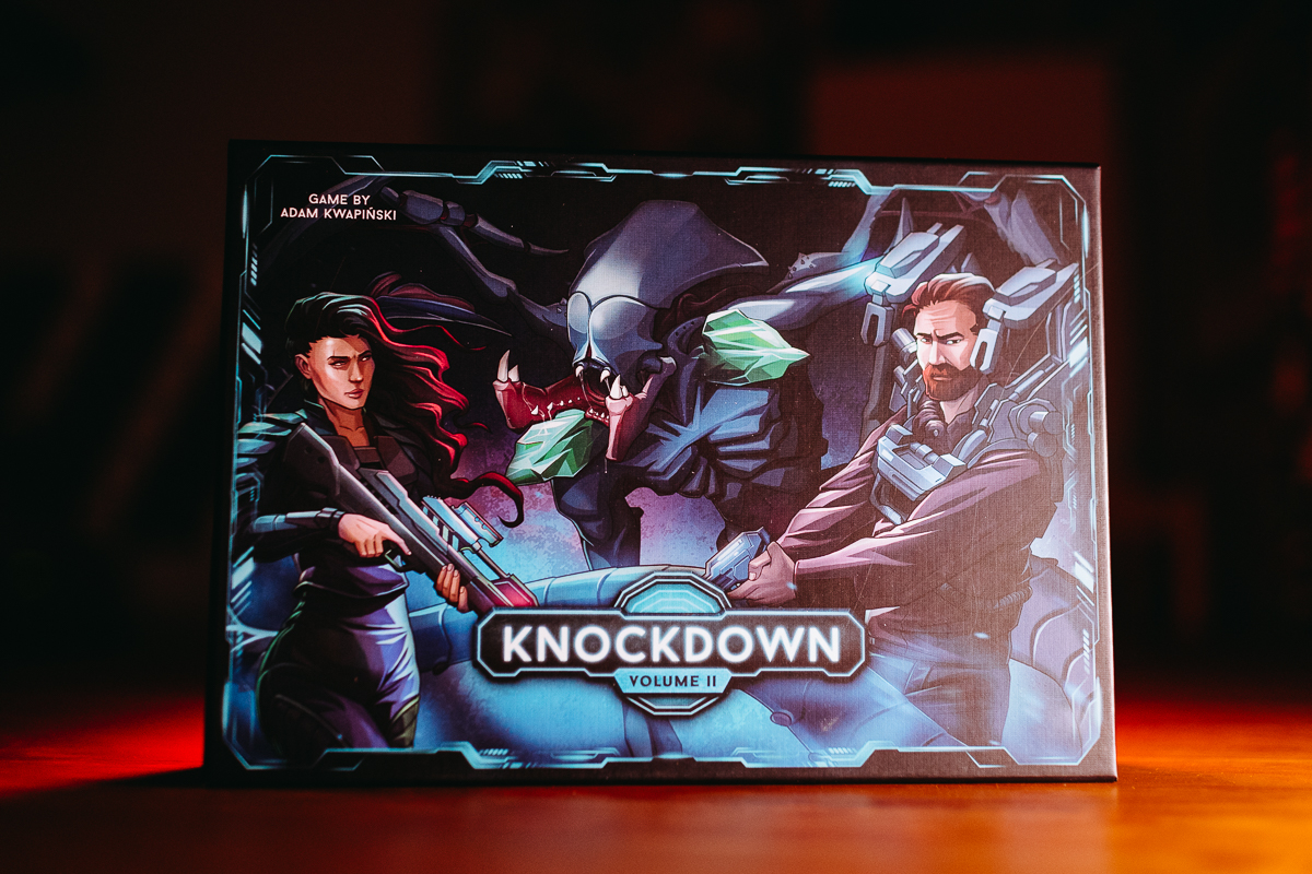 Knockdown to najnowsza gra Adama Kwapińskiego dla dwóch osób. Gracze toczą w niej pojedynek, przywodzący na myśl walki w arcadowych bijatykach. Pudełko staje się areną walki. Zagrywając kolejne karty, wyprowadzamy ciosy, kopnięcia, a dzięki odpowiedniej sekwencji możemy pokonać przeciwnika. Ten, nim padnie pokonany, ma jeszcze szansę odzyskać równowagę. Pojawia się zręcznościowy aspekt r...