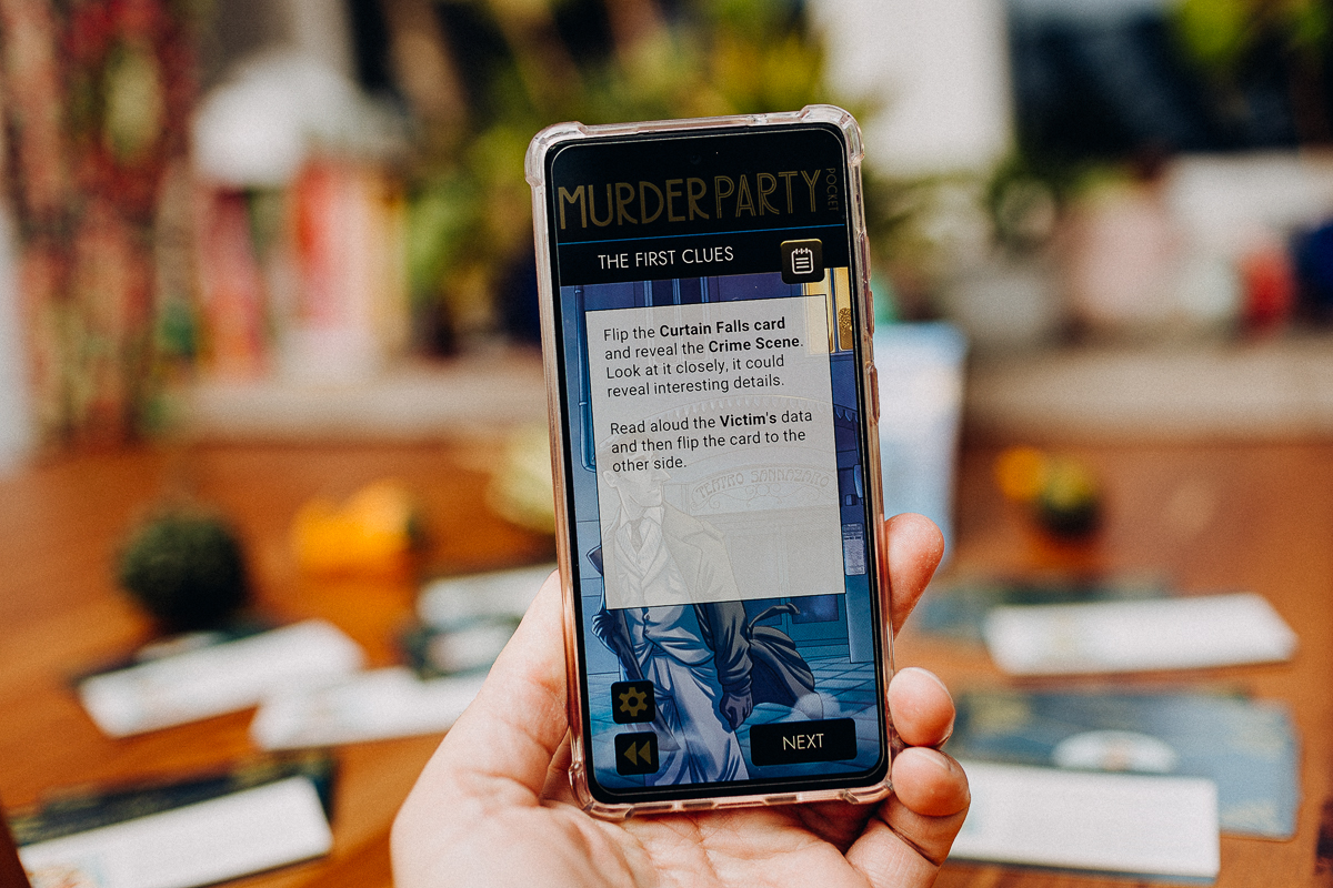 Murder party pocket is a game of crime investigation, mixing a card game, a role-playing game, and an app that guides in the game and dictates the timing and methods of the investigation.
