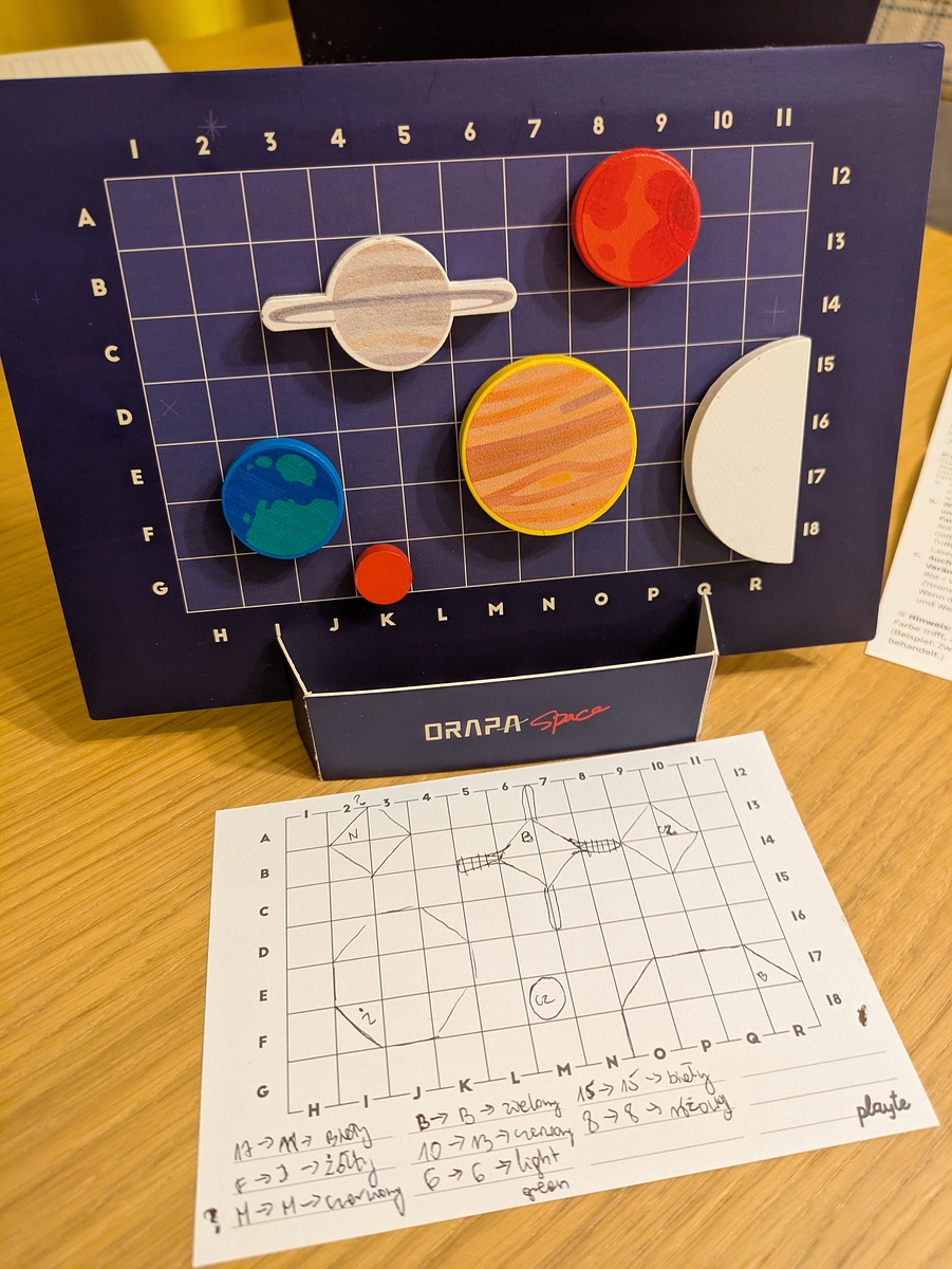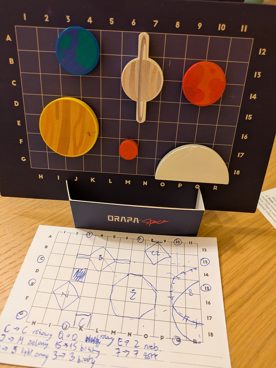 The Aerospace Department has sent us a mission: use laser beams to uncover the hidden positions, directions, and colors of mysterious planet-shaped pieces. By carefully analyzing the laser signals that bounce back, players must deduce the exact setup of the planets. But beware—lasers don't always behave predictably!